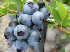 中〜大粒、果皮は青色、しっかりした果実、風味優良、樹勢強
